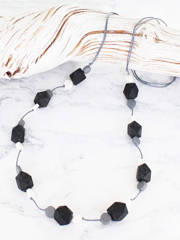 RS6903BL LONG RESIN DISC & FACETED CUBE NECKLACE