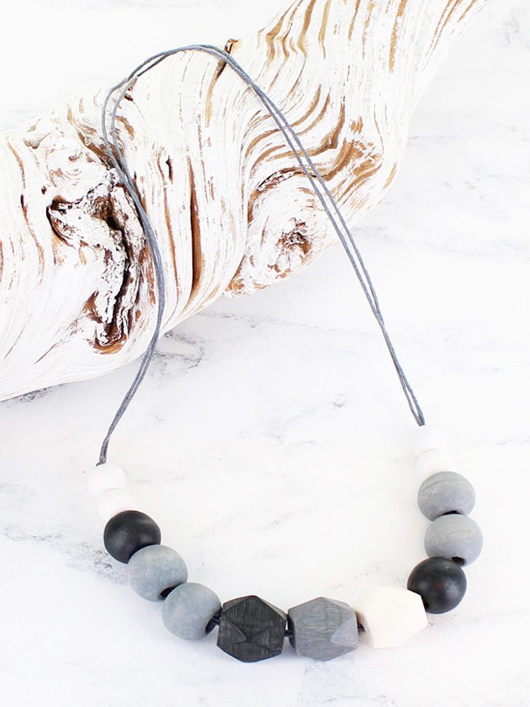 RS6904BW SHORT MIXED SHAPE RESIN NECKLACE – BLACK, WHITE GREY