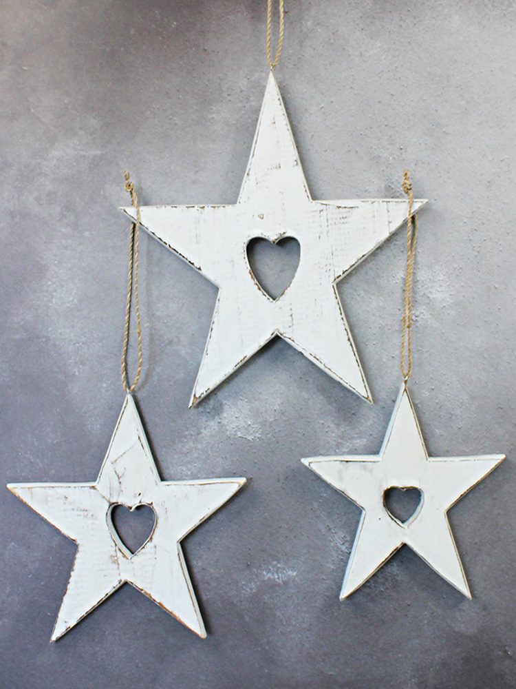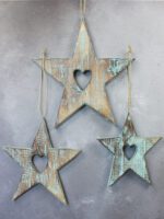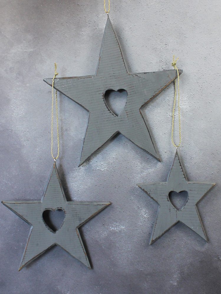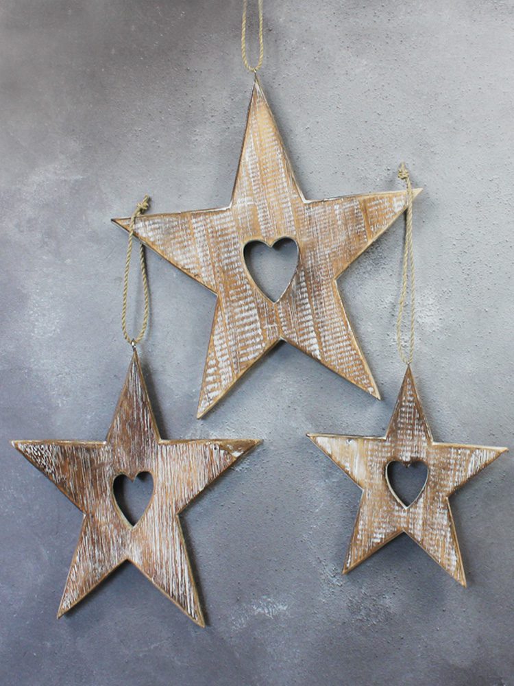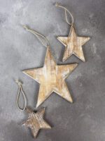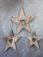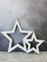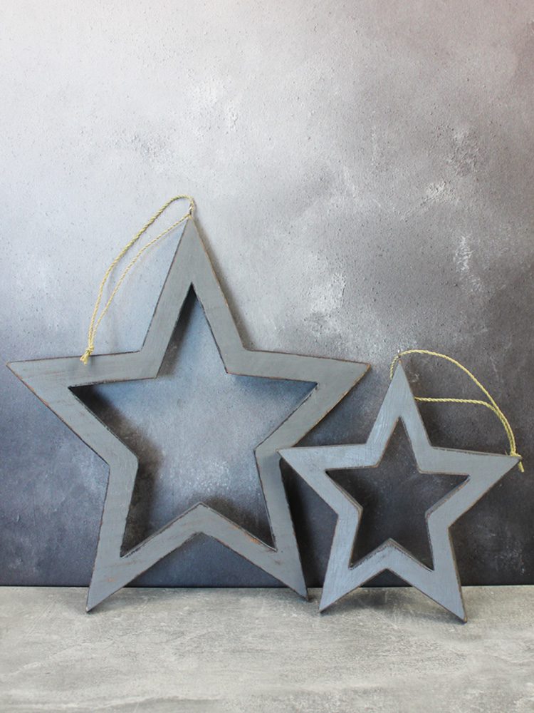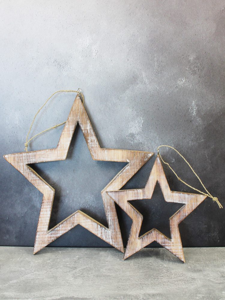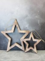 RT6101GY SET/2 OPEN WOODEN HANGING STARS