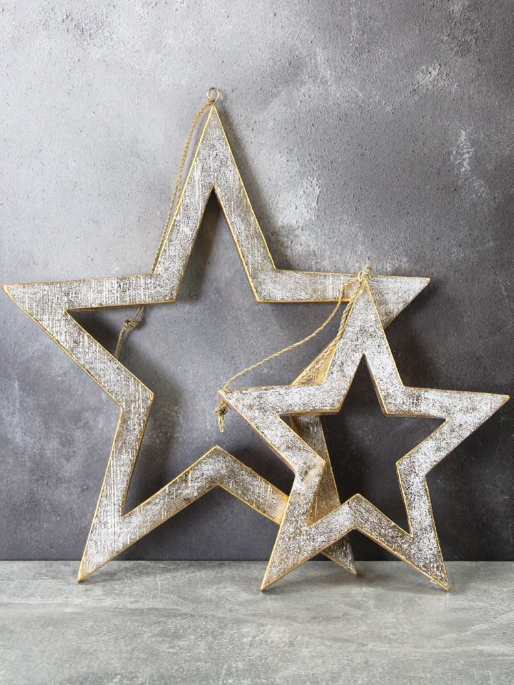 RT6101WG SET/2 OPEN WOODEN HANGING STARS