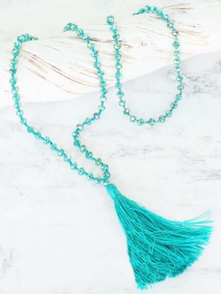 PP6704W LONG CRYSTAL BEAD TASEL NECKLACE – WHITE MOONSTONE