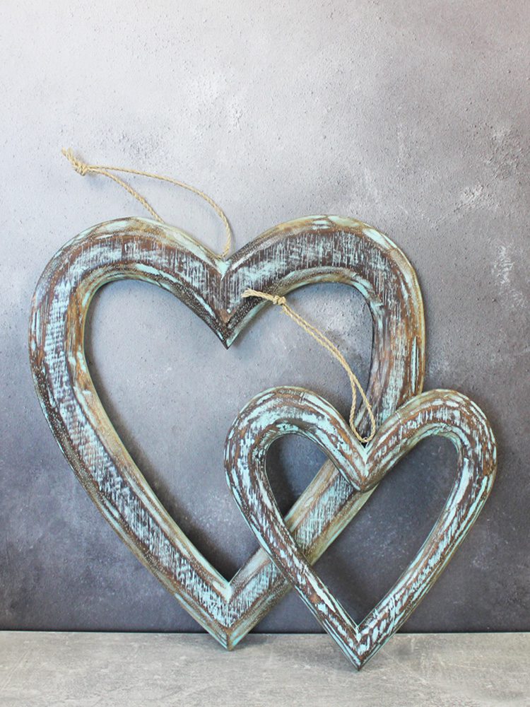 RT6102TU SET/2 OPEN WOODEN HANGING HEARTS