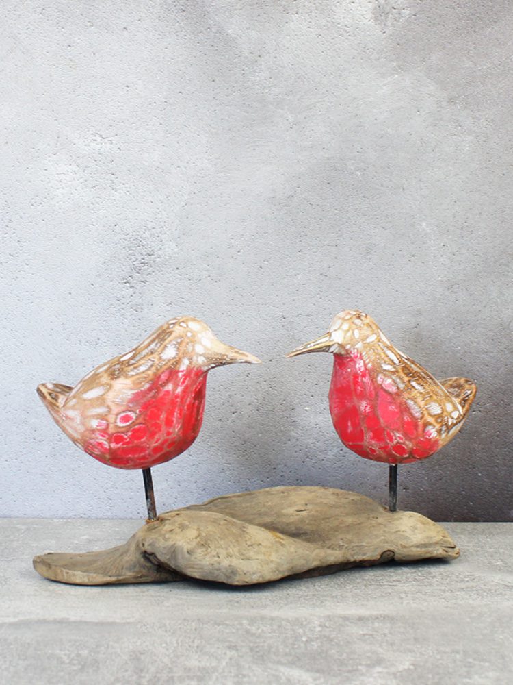 RT6110RB DOUBLE WOODEN BIRD ON NATURAL ROOT BASE (ROBIN)