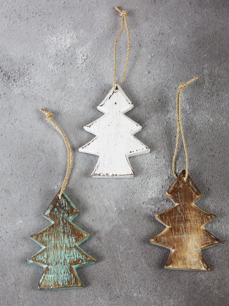 RT6205B MIXED PACK OF 3 HANGING WOODEN XMAS TREES