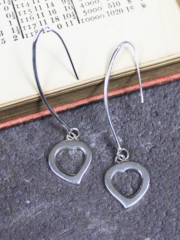 BU1904 SILVER DROP OPEN HEART EARRINGS