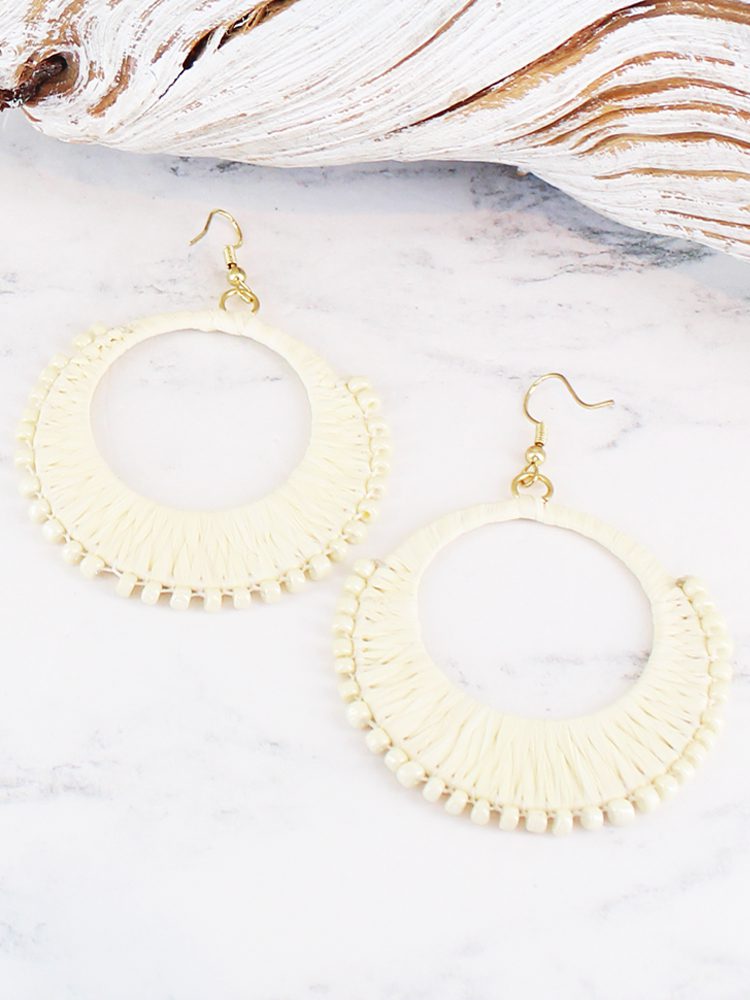 SJ1301CR RAFFIA & BEAD HOOP EARRINGS