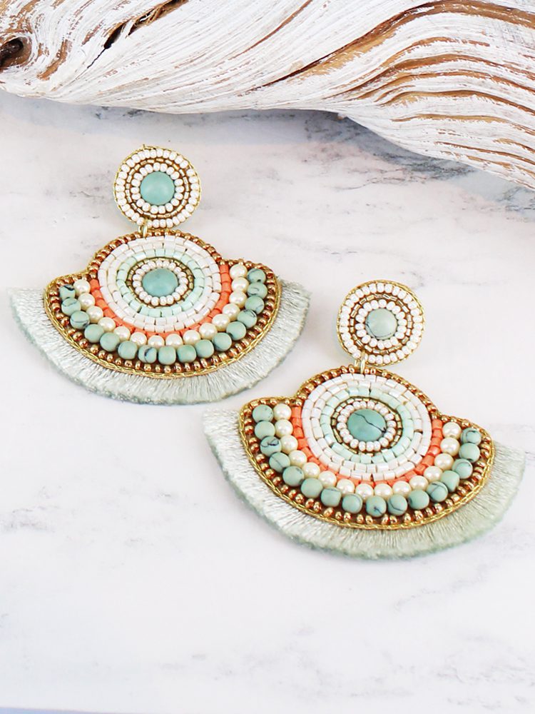SJ1302MT BEADED FAN STATEMENT EARRINGS