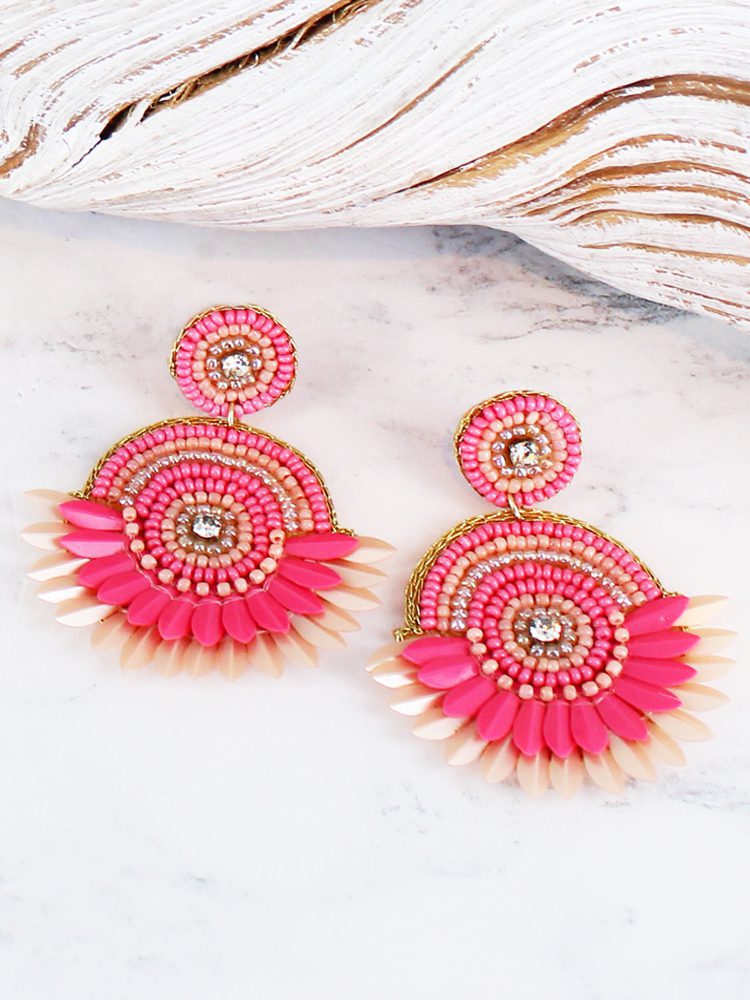 SJ1303PK BEADED DISC & FEATHER EARRINGS