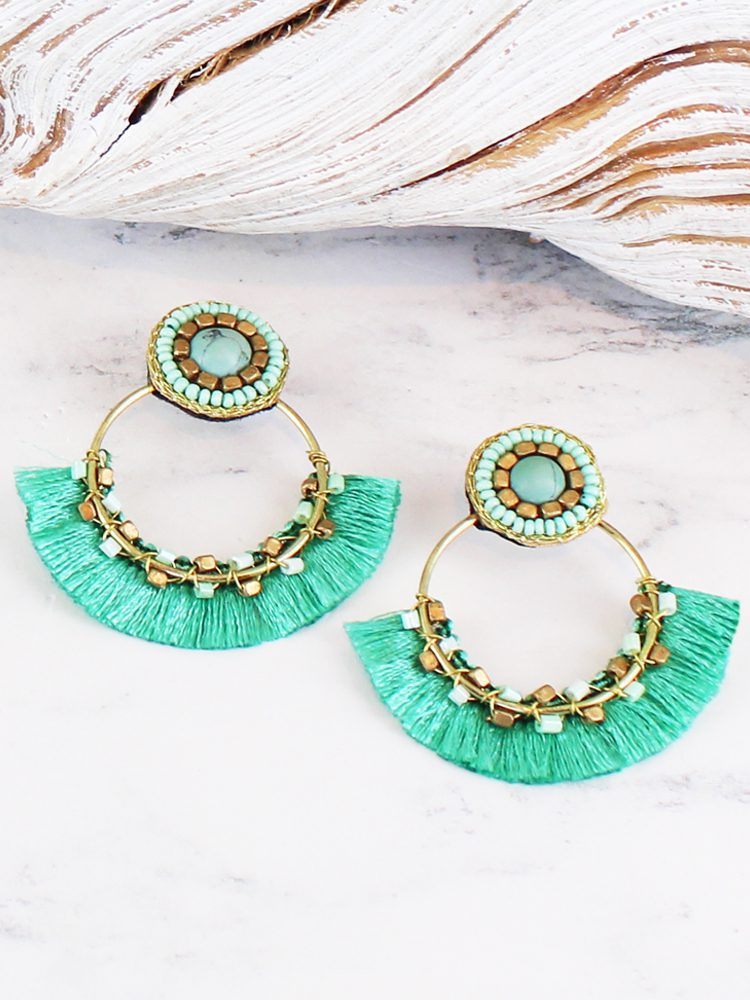 SJ1305TU HOOP & TASSEL STATEMENT EARRINGS