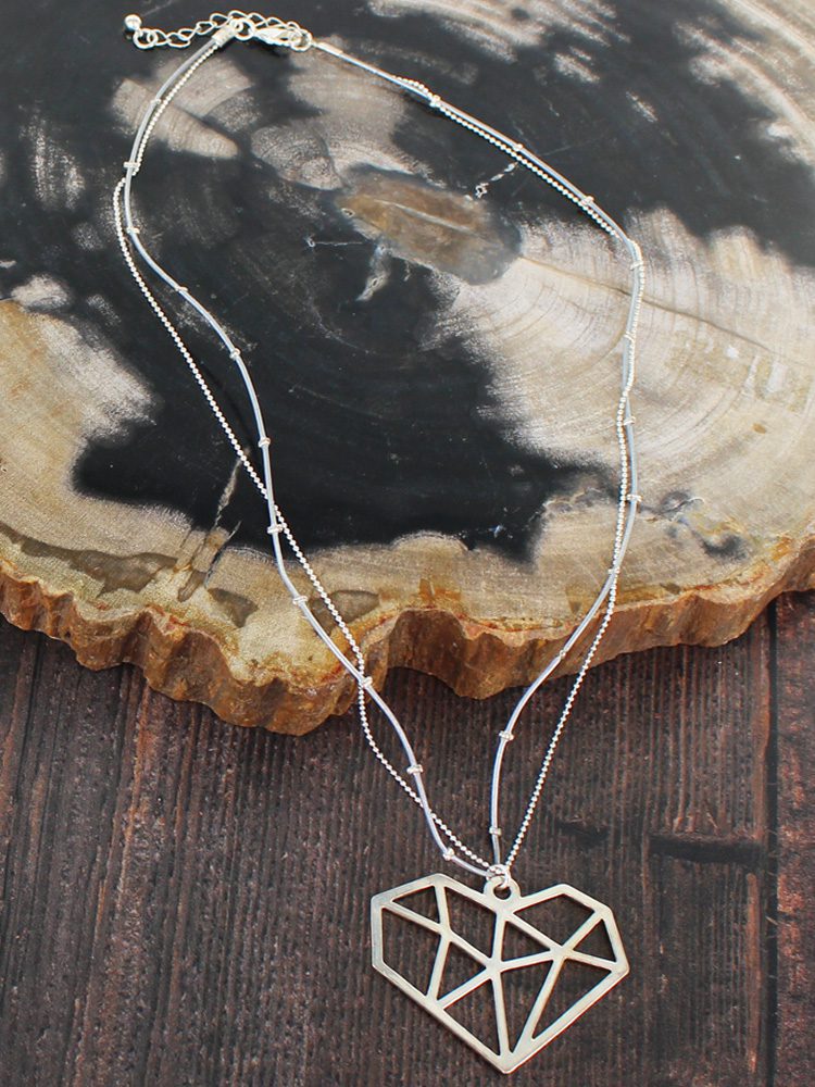 SP007H SIMPLE 2-STRAND NECKLACE WITH HEART PENDANT [SILVER-PLATE]