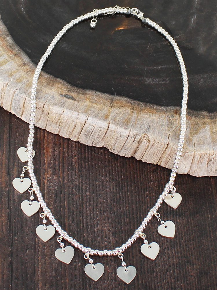 SP030H SHORT CHARM NECKLACE WITH DROP HEARTS [SILVER PLATE]