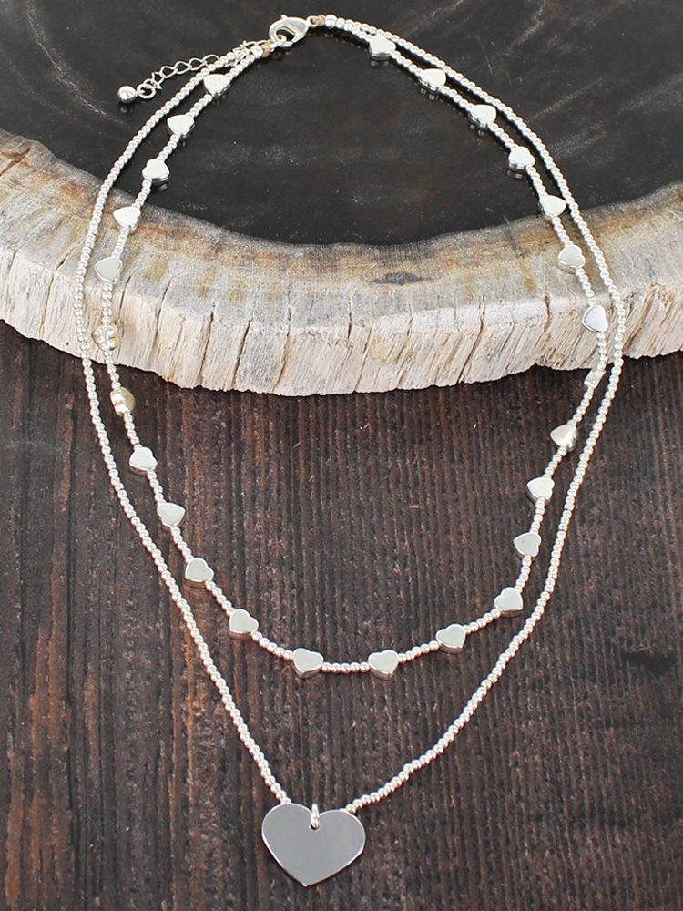 SP031H SHORT DOUBLE STRAND HEART CHARM NECKLACE [SILVER PLATE]