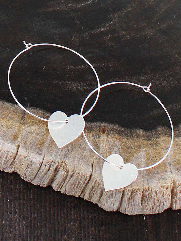 SP034H SIMPLE HOOP EARRING WITH HEART CHARM [SILVER PLATE]