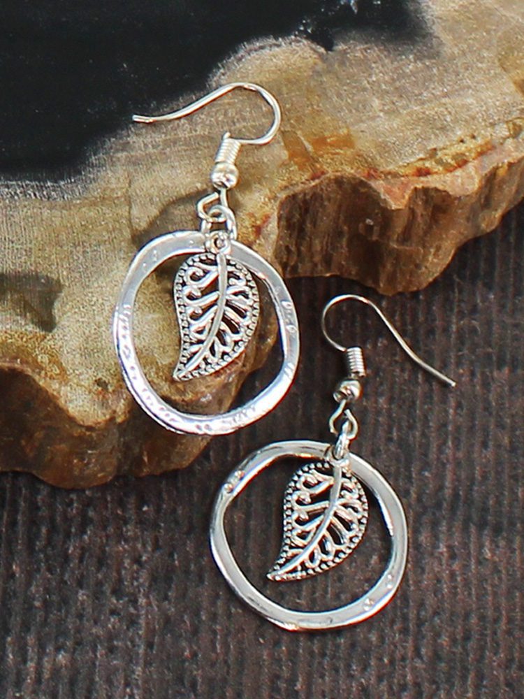 SP104L PACK/2 RING EARRING WITH LEAF CHARM [SILVER-PLATE]