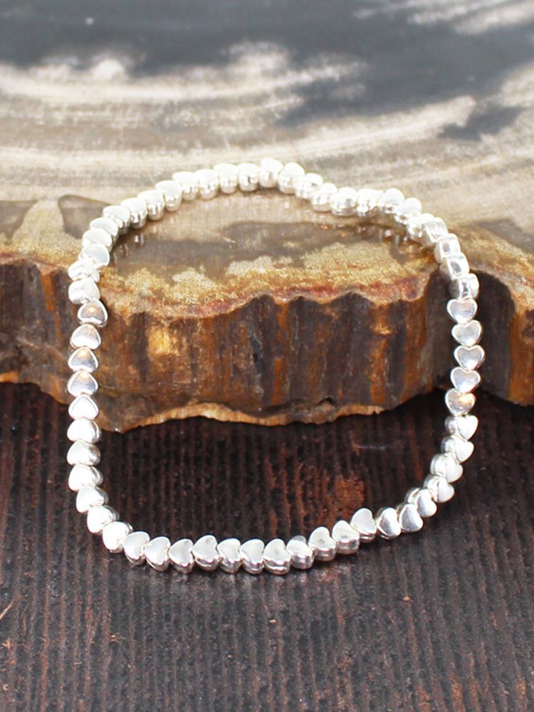 SP105H ELASTICATED HEART BRACELET [SILVER PLATE]