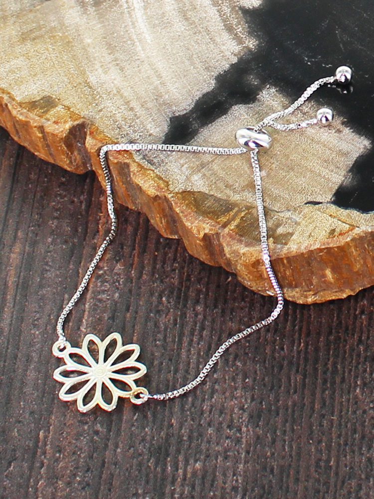 SP201F ADJUSTABLE FLOWER CHARM BRACELET [SILVER PLATE]