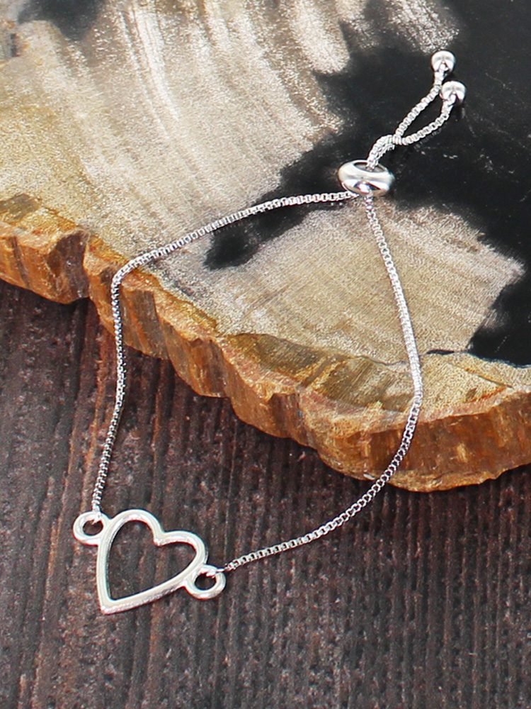 SP201H ADJUSTABLE HEART CHARM BRACELET [SILVER PLATE]