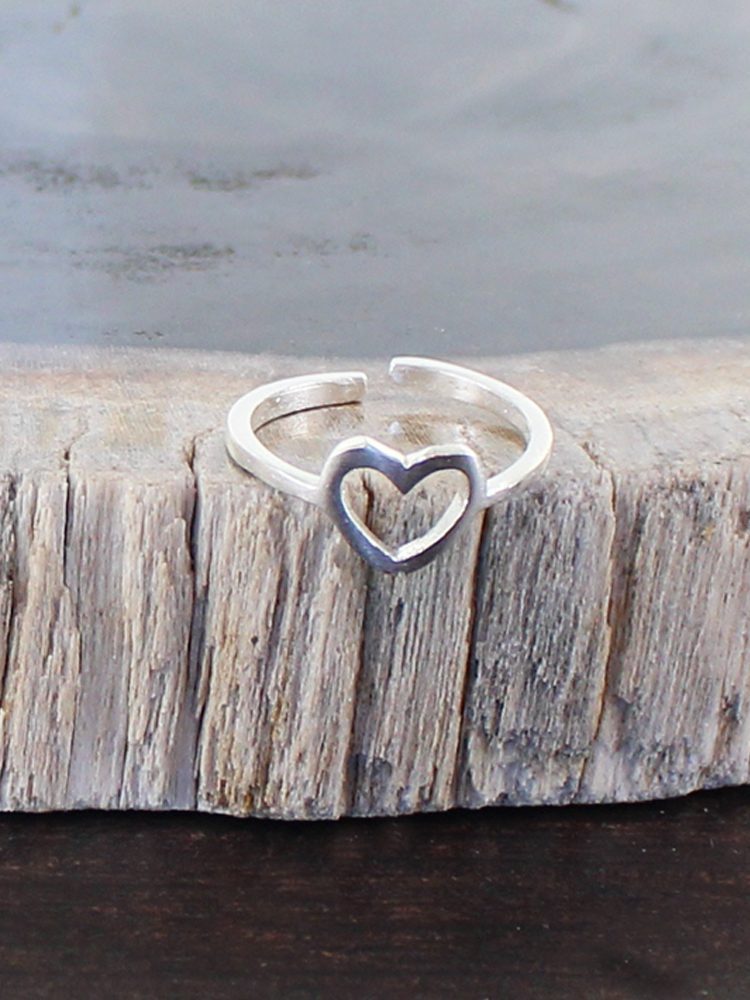 SP211H SIMPLE HEART RING [ADJUSTABLE, SILVER PLATE]
