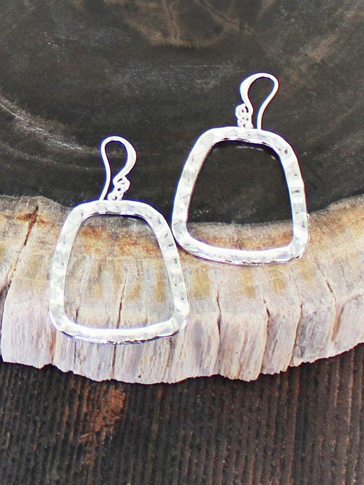 SP334 HAMMERED OPEN SQUARE EARRINGS [SILVER PLATE]