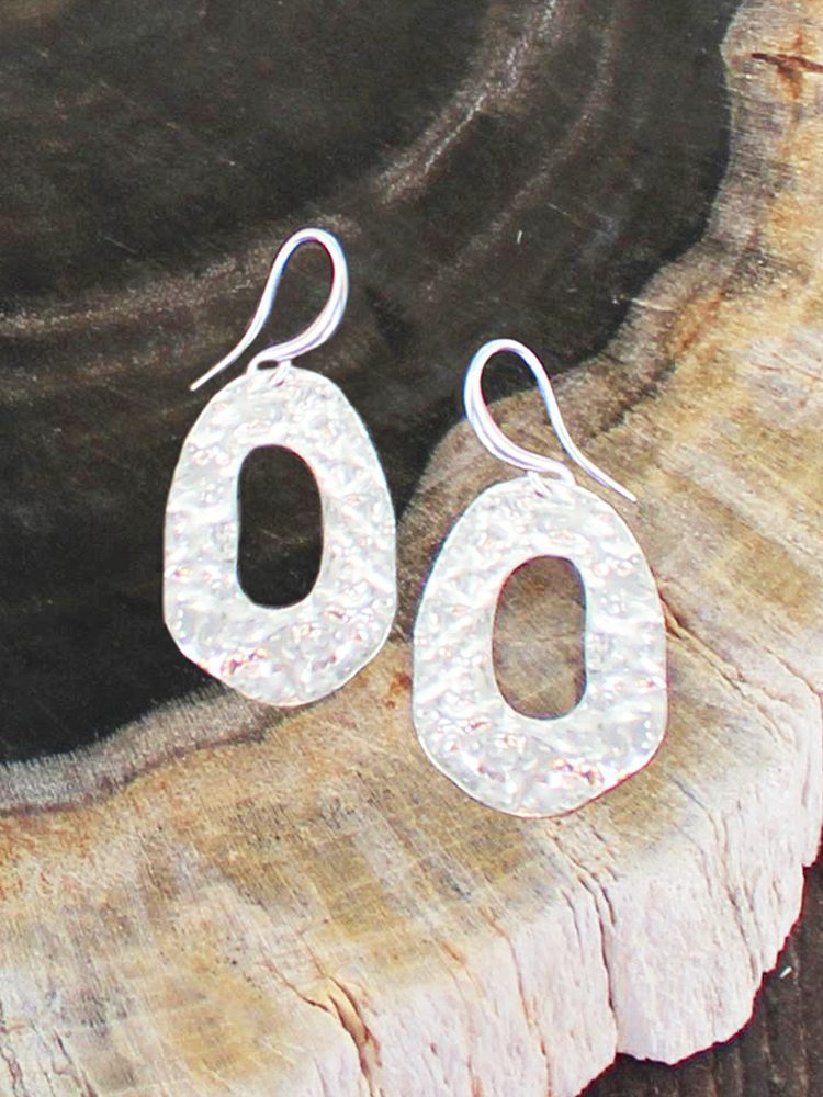 SP463O TEXTURED OVAL EARRING [SILVER PLATE]