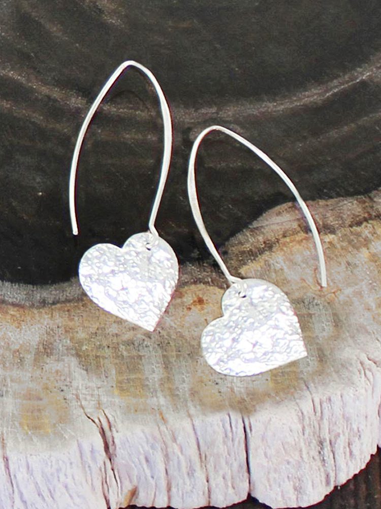 SP464H DROP EARRING WITH TEXTURED HEART CHARM [SILVER PLATE]
