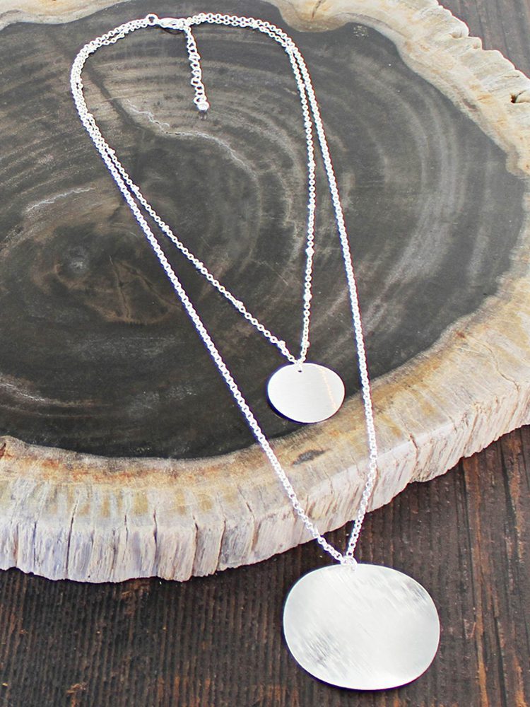 SP465 2-STRAND BRUSHED DISC NECKLACE [SILVER PLATE]