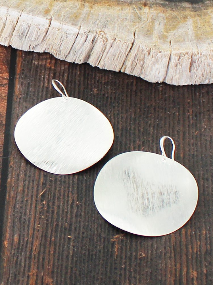 SP467 LARGE BRUSHED DISC EARRINGS [SILVER PLATE]