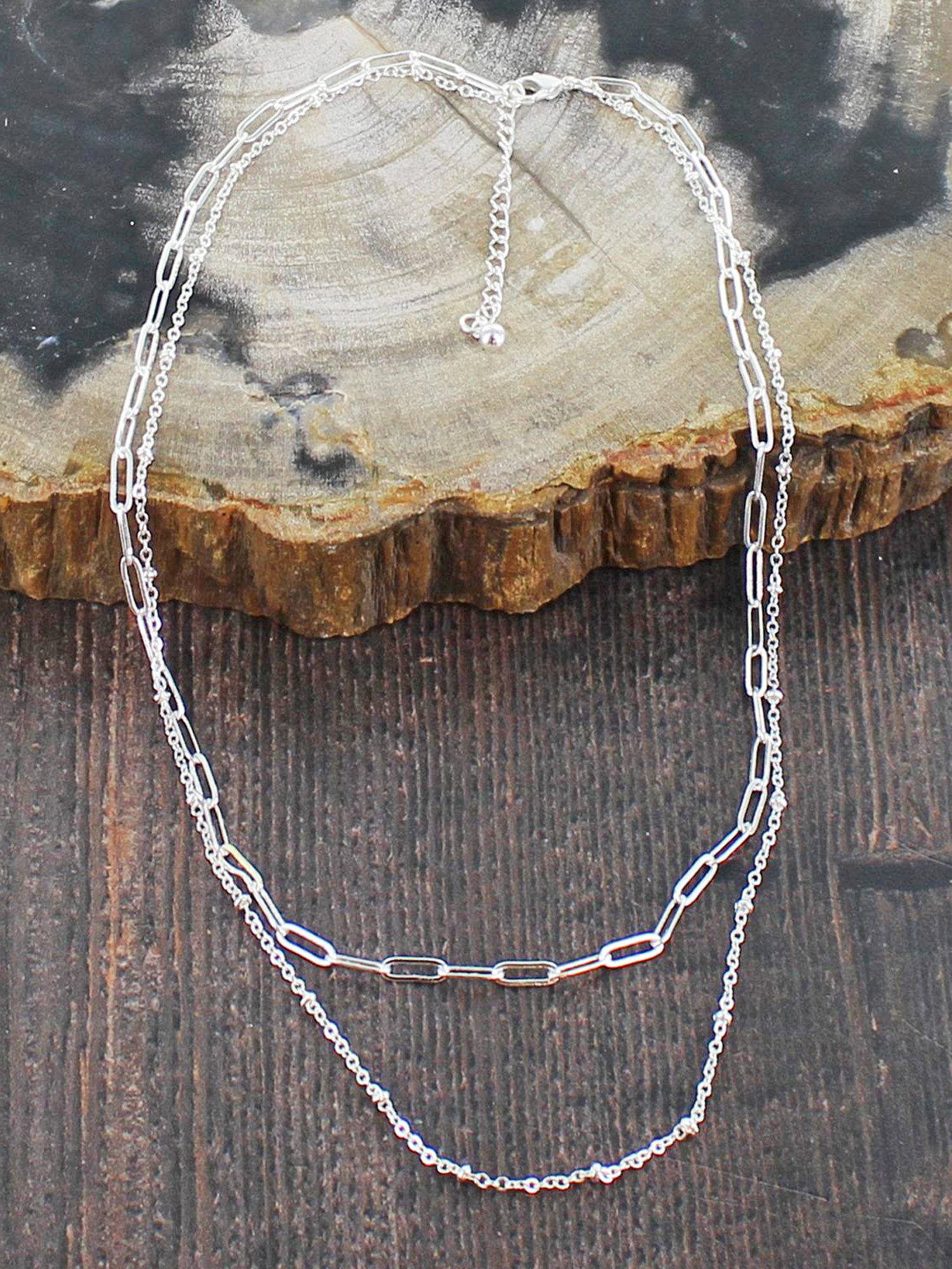 SP474 DOUBLE STRAND CHAIN NECKLACE [SILVER-PLATE]