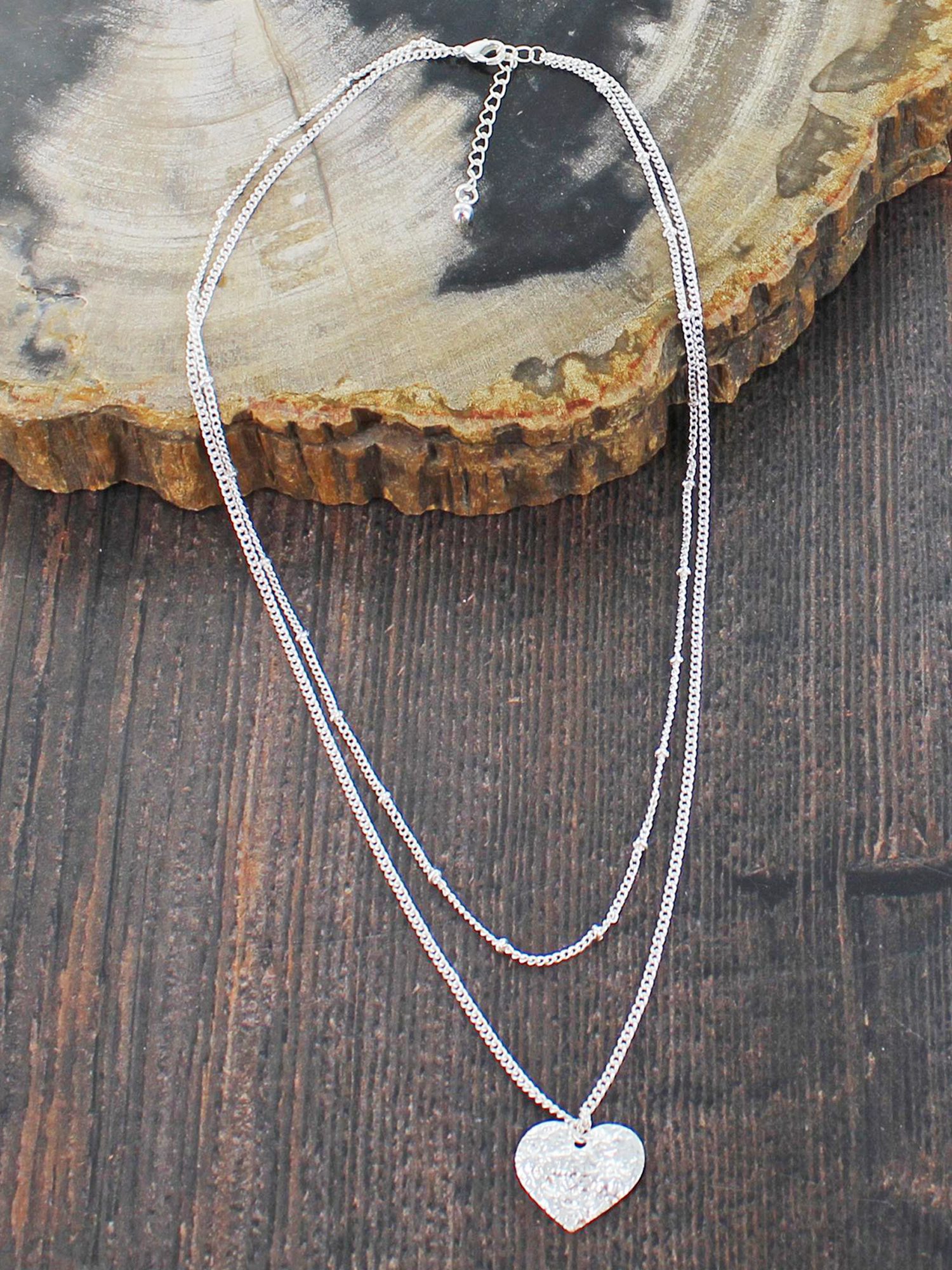 SP476 DOUBLE STRAND HEART NECKLACE [SILVER-PLATE]
