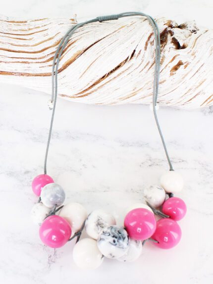 JP1103PK SMOKED RESIN BALL CLUSTER NECKLACE WITH ACCENT COLOUR