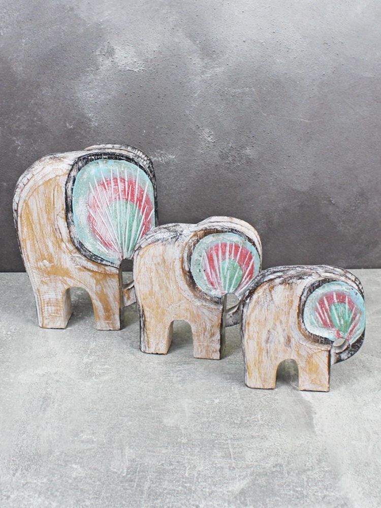 TD1302A SET/3 WOODEN ABSTRACT ELEPHANTS