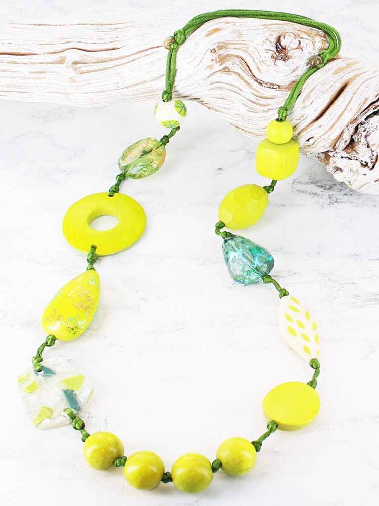 .UJ1401 LONG MIXED SHAPE RESIN & WOOD NECKLACE