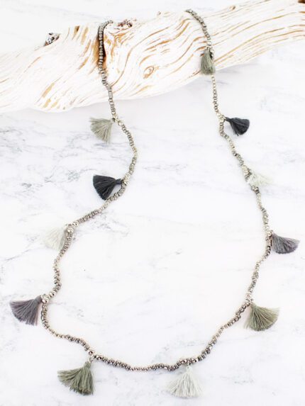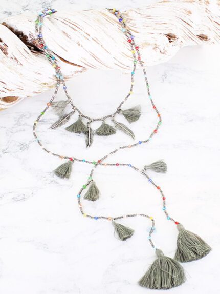 Login to see pricesRS1802GY TRIPLE-FEATHER TASSEL NECKLACE WITH MULTI-COLOUR BEADING